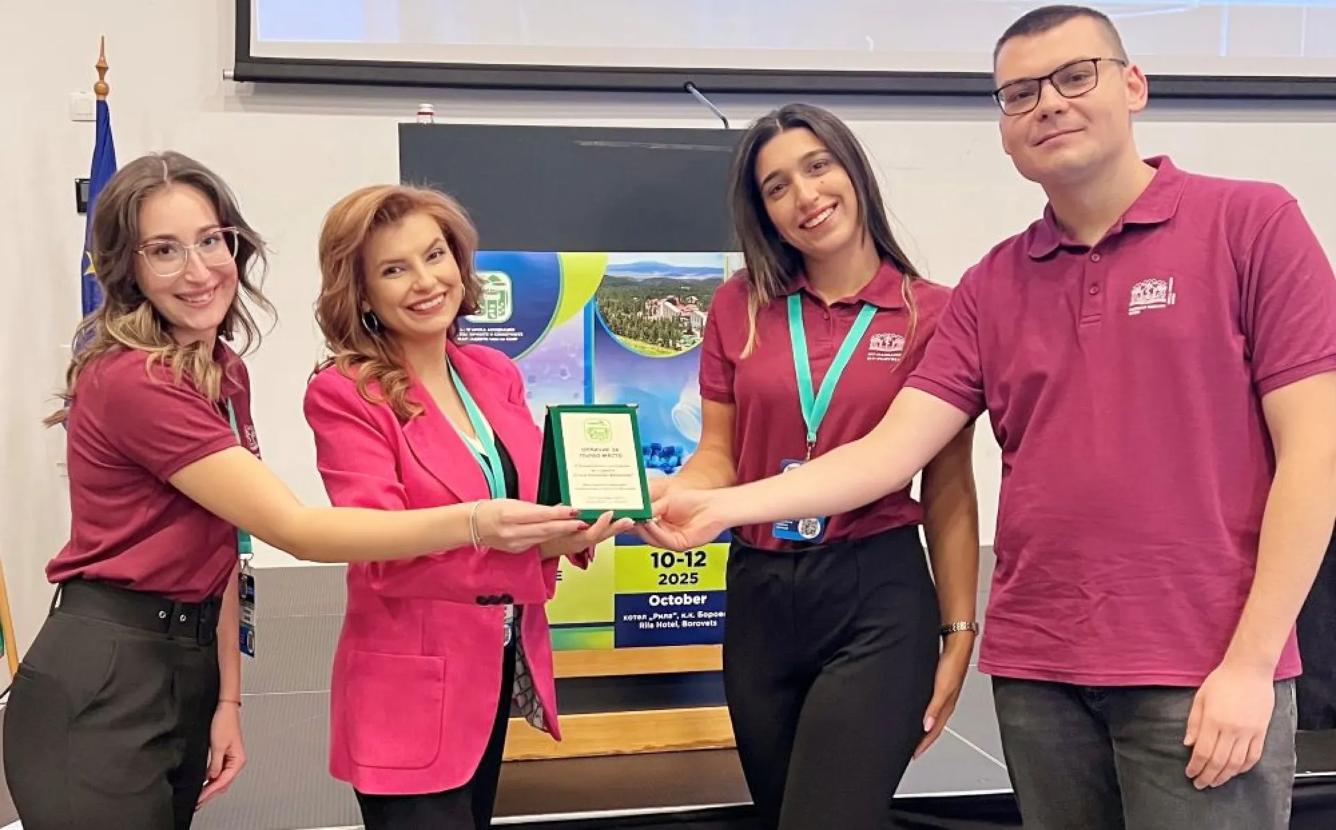 Петокурсниците от специалност „Фармация“ в Медицински университет – Пловдив – Атанас Ламбрев, Атанася Шопова и Габриела Ангелова, заедно със своя ментор от Катедрата по организация и икономика на фармацията – доц. Радиана Стайнова, спечелиха първо място на Петото национално състезание за студенти „Стани болничен фармацевт“.